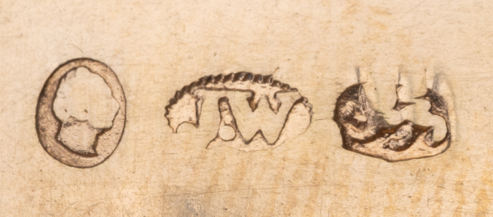 Fully hallmarked inside for Birmingham, with the maker’s mark “J.W.” for Joseph Willmore, the anchor assay mark, sterling lion passant, and date letter “k” for 1833. The box measures 72 mm × 50 mm × 19 mm (2.83 × 1.97 × 0.75 in) and weighs 74 g.