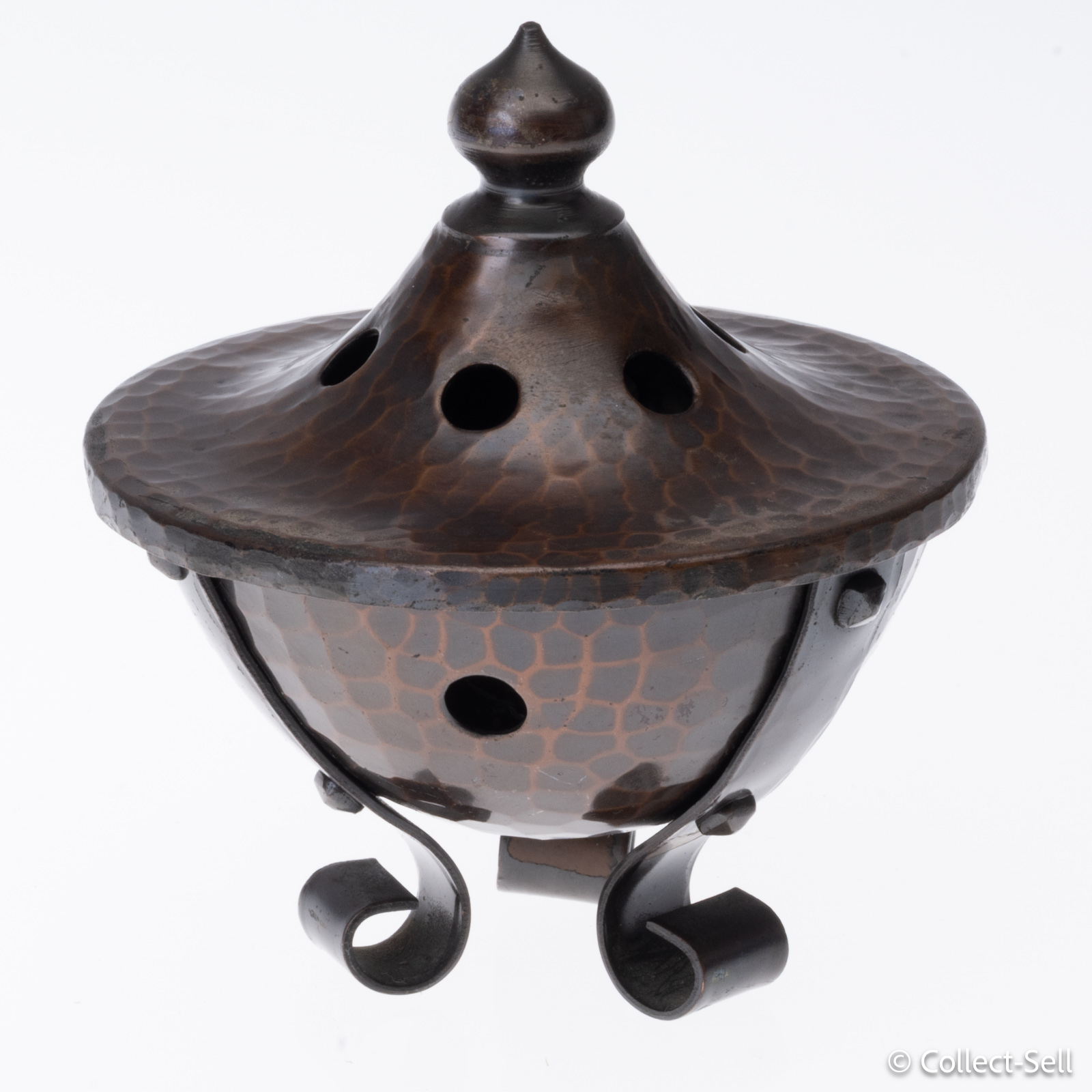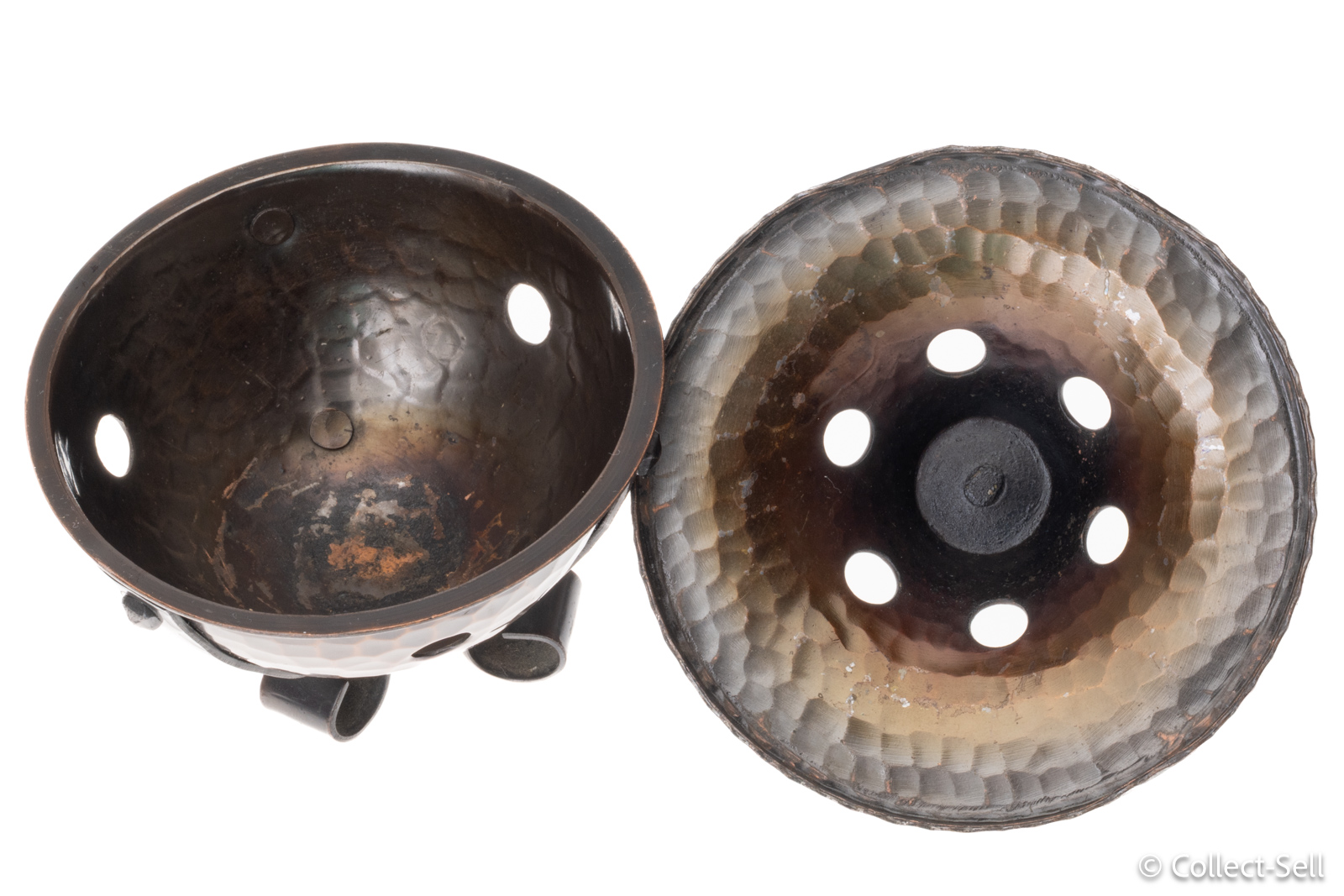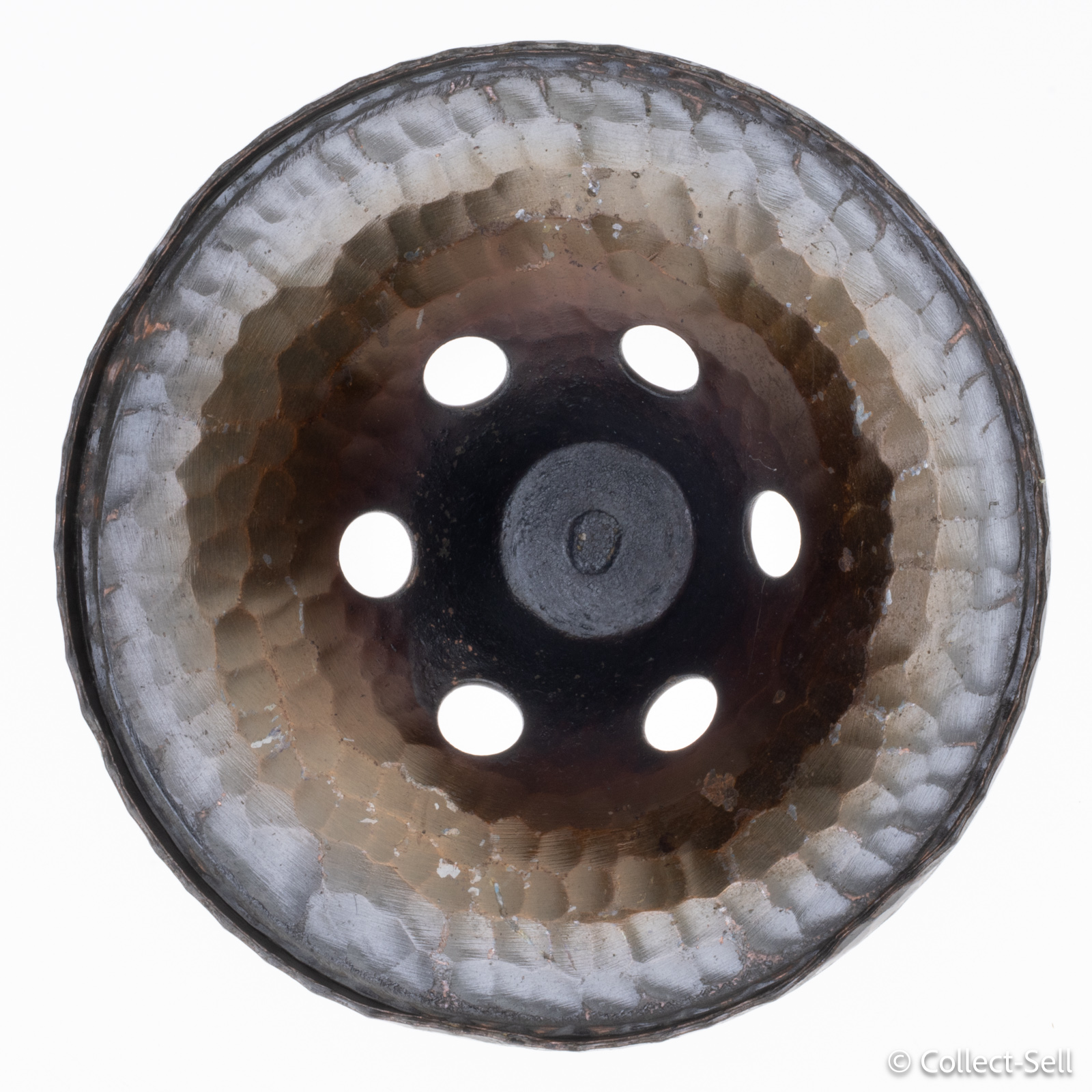 Interior: Moderate oxidation and surface residue inside the base bowl, typical of use with incense or charcoal